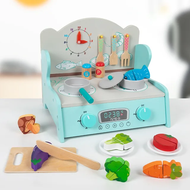 Venta al por mayor 2025 divertido superventas juego de simulación preescolar juegos de madera niños cocina juguete para niños DIY comida niños juegos