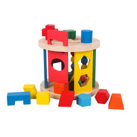 การจับคู่รูปทรงเรขาคณิตของกล่องไม้รูปทรงกระบอกมีรูพรุนเพื่อการเรียนรู้ของเล่นปริศนาสำหรับเด็กปฐมวัย